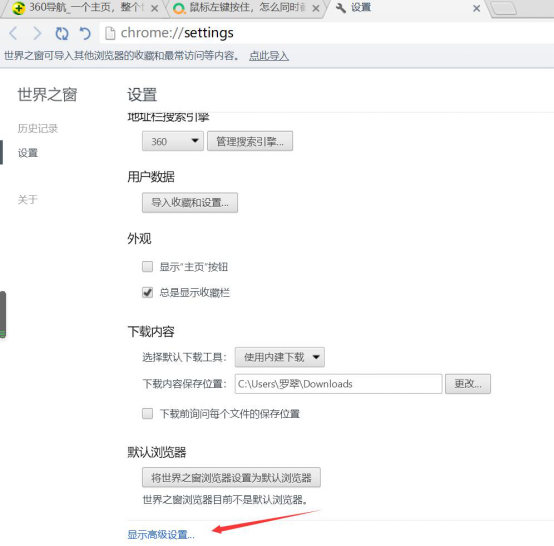 3. 进入设置界面后,点击“显示高级设置”。