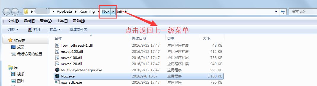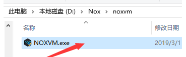 如图,找到软件安装位置,点击“Nox”,返回上一级,并打开里面的 noxvm 文件夹,