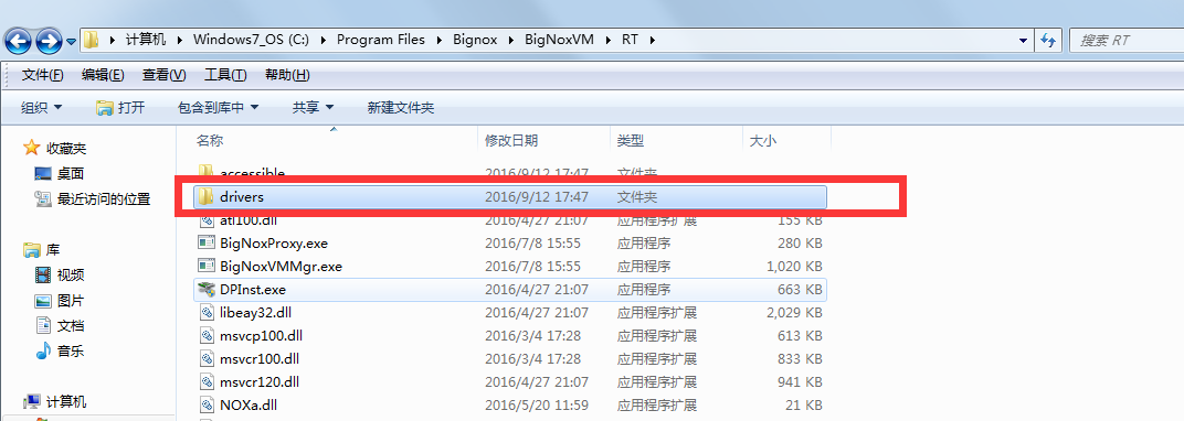 第一步:首先查看电脑里是否有 drivers 文件夹,路径“C:\\Program Files\\Bignox\\BigNoxVM\\RT”,如果有请接第二步,没有请接第三步,