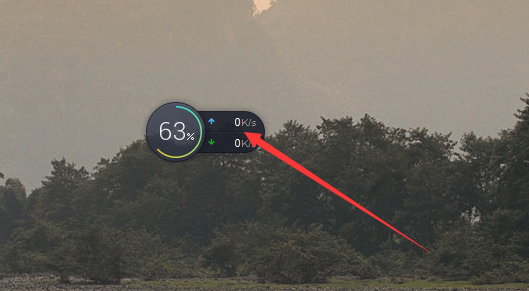 如图,找到电脑管家加速球,点击网络上传和下载速度显示框,