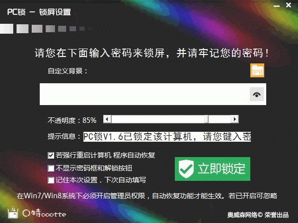 i特挂机锁屏助手是一款由奥威森研发部开发的屏幕锁定软件。若您需要临时离开电脑,却又不希望这台计算机另外的使用者对您的设置进行更改,那么使用 i 特挂机锁屏助手是明智之举。