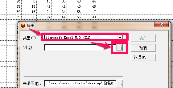 进入导出窗口,点击“类型”,选择 Microsoft Excel 5.0(XLS),然后选择导出保存路径,我选择保存在桌面,
