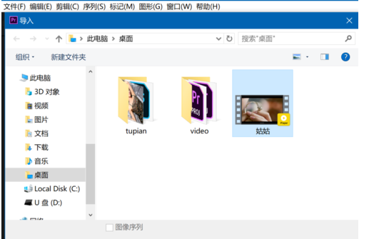 打开 Premiere 软件,新建一个项目,点击文件->导入,如图,