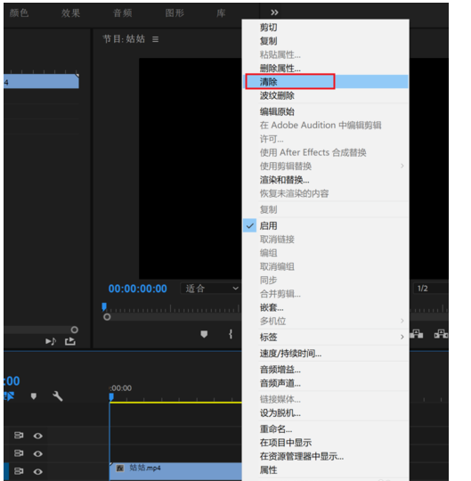 右键单击音频轨道,在弹出的菜单中点击“清除”,如图,