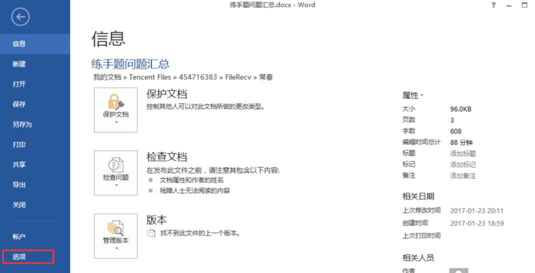 2. 点击“文件”,在左侧栏中选择“选项”,也可以由提示信息中进入信任中心,