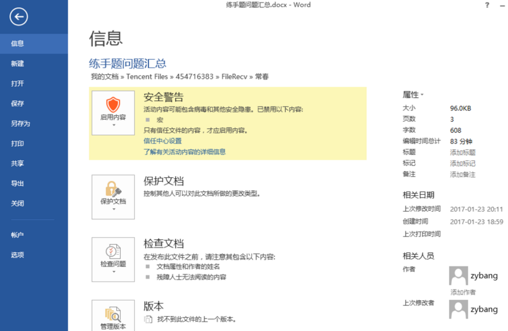 1. 随便打开一个 Word 文档,会弹出安全警告提示,我们可以点击了解相息,如信任网络上的文档等等,