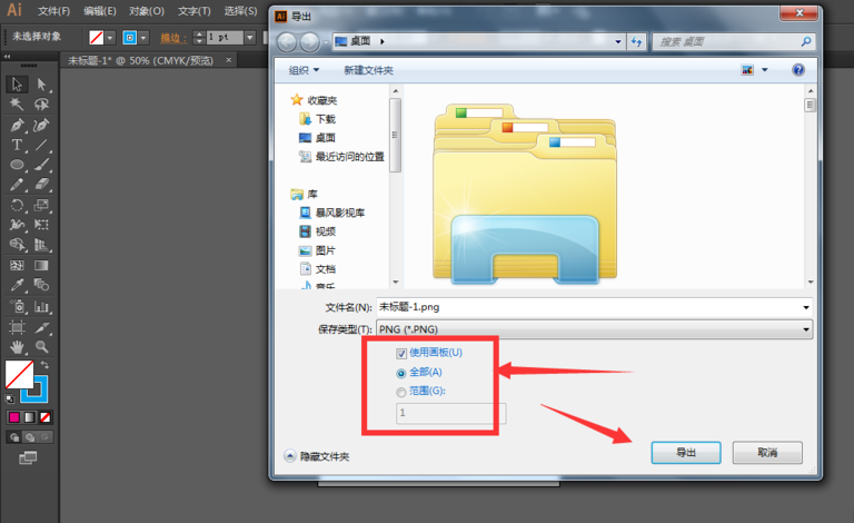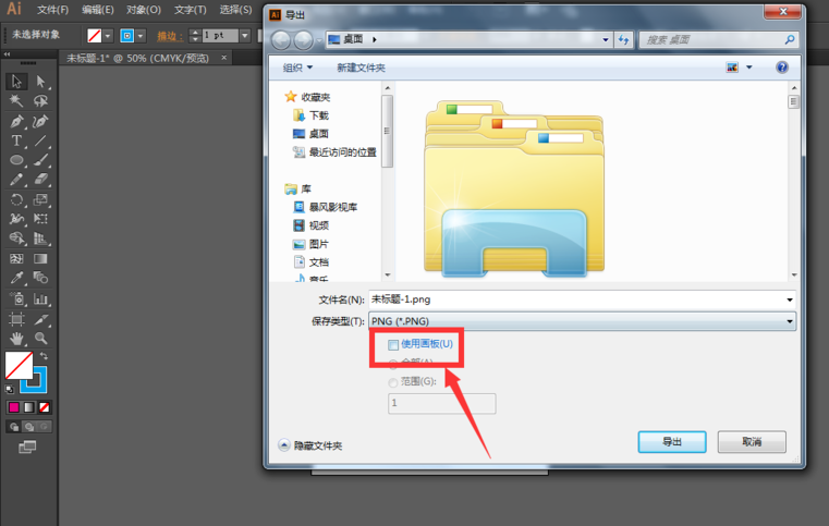 需要导出带有画板时的图形时、必须选中“使用画板”,在选中状态下保存导出,