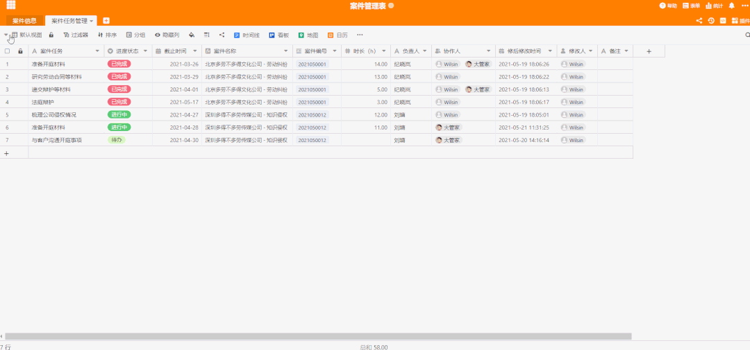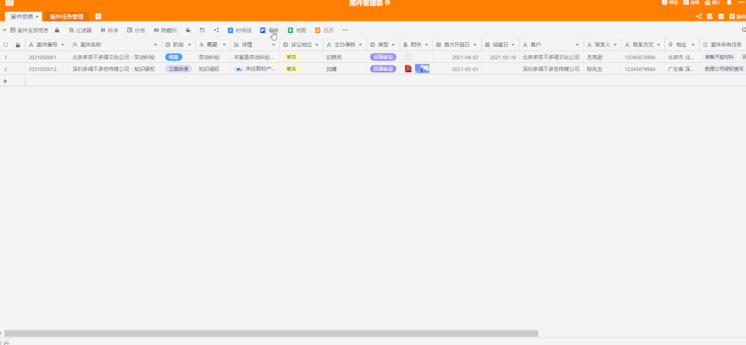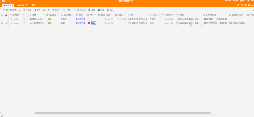 我们用表格管理信息时,经常需要记录同一业务的不同类信息的关联关系,比如:在“客户销售管理表”中,需要关联客户基本信息和每个客户的多个跟进记录;在“律师案件管理表”中,需要关联案件基本信息和每个案件的多个任务等等,像这种关联关系在 Excel 中无法很好地去处理和表达,经常需要重复地去记录,而在 SeaTable 中就很轻松省事儿。