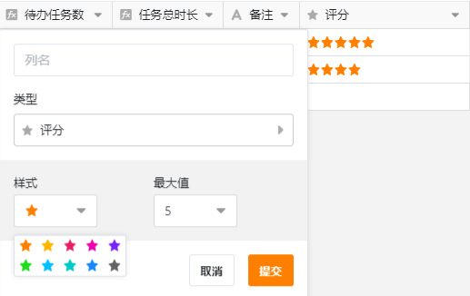 它是以小时、分钟、秒或毫秒为单位表示一段持续时间的列类型。它包括 h:mm、h:mm:ss 两种格式。“时长”类型的列之间可直接进行加减计算。