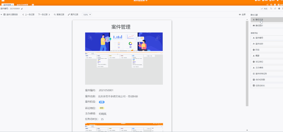 可自动发送信息到企业微信和邮箱等,提升办公、商务效率。可把表格中的内容自定义设计为页面 (支持打印导出、自动从模板生成 PDF 文件等)。