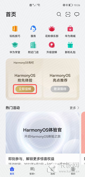 2.进入后,在HarmonyOS专栏下方的“HarmonyOS抢先体验”,点击【立即尝鲜】;