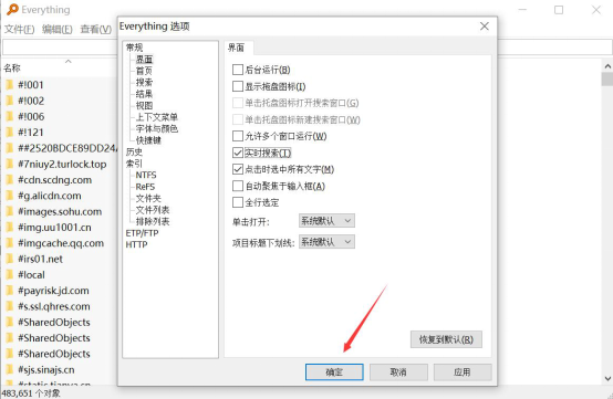 操作完上一步后别忘记点击"确定"按钮。这样可以进一步确保 everything 已成功恢复使用。最后再将"选项"卡关闭,重启该软件,everything 无法使用的这个问题即可有效地被解决。整个操作其实还是很简单方便的。