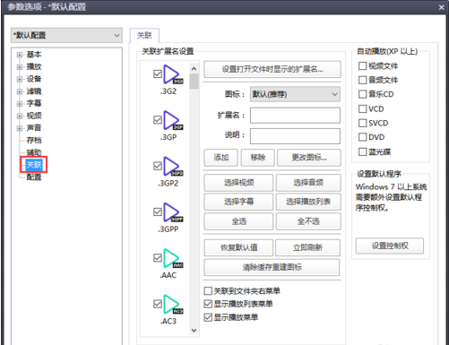 最后是"关联",就是把 potplayer 播放器设置成音视频文件打开的默认程序。