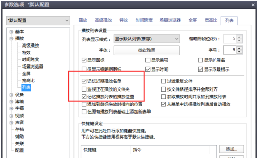 "宽高比"和"列表"如图设置就好了,"记忆近期播放名单"和"记忆播放列表的播放位置"都是很实用的功能。
