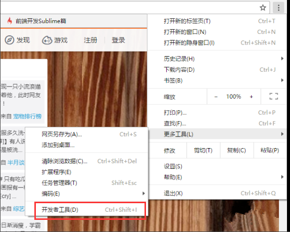 2. 接着在主界面右上角的菜单中打开"开发者工具",也可以直接用快捷键"F12"打开;