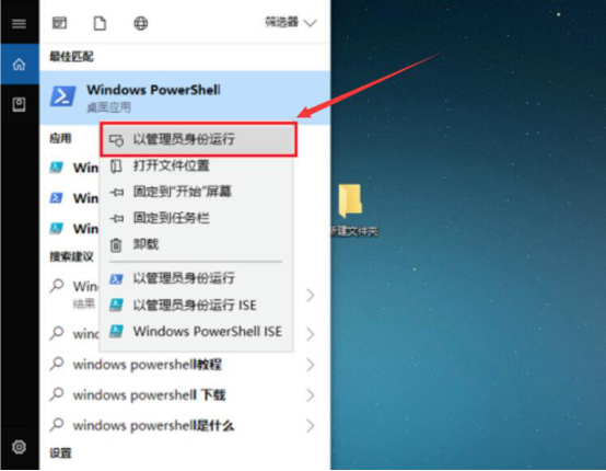 3.接下来,在开始菜单中找到"Windows PowerShel",为了解决 Microsoft Edge 闪退,就右键单击它后,点击"以管理员身份运行"。