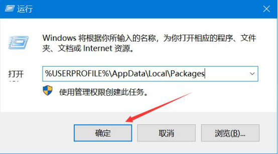 1. 首先,"Win+R"打开运行。在运行的搜索框中输入"%USERPROFILE%\\AppData\\Local\\Packages",再点击"确定"按钮。