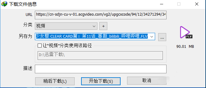弹出对话框,如图,对下载文件进行重命名,然后设置文件保存路径,点击"开始下载",