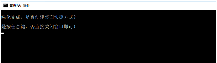 进行"cmd" 命令提示符窗口,提示"绿化完成,是否创建桌面快捷方式?",回车,创建快捷方式,