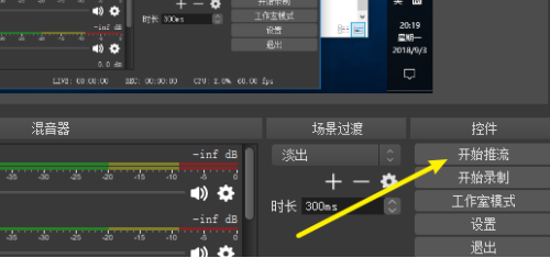 8. 返回 OBS 软件主界面,点击右下方"开始推流",即可进行直播。