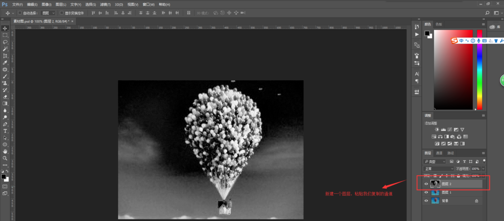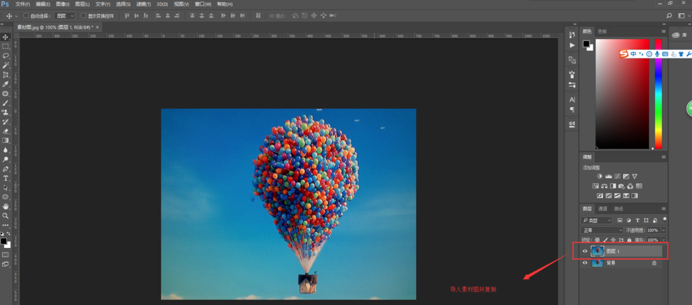 打开 PS 软件,将图片拖入到 PS 中,按键盘上的 Ctrl+J 复制一个图层,接下来介绍将彩色素图片变成黑白图片的方法,所有操作都针对复制图层来执行。