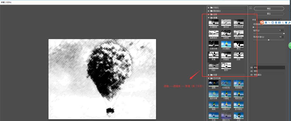 方法 9. 使用 PS滤镜 来将彩色照片转为黑白照片,首先将前景色与背景色设置成黑白色,然后通过菜单栏中"滤镜菜单"——"滤镜库"——"素描(除水彩画低)"都可以形成特殊黑白图像,这种方法一般也不采用。