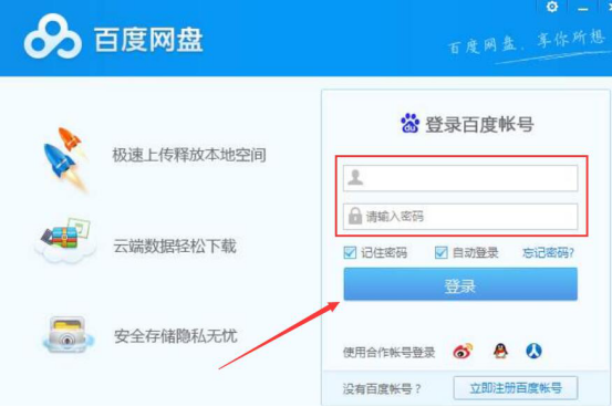 1. 首先,打开电脑的百度网盘客户端,输入账号、密码,点击"登录"按钮。
