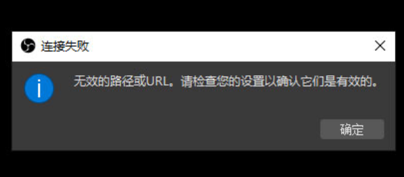 全部设置完成,在 OBS 软件中点击"开始推流",提示“无效的路径或 家在使用OBS推流的过程中难免会遇到困扰。OBS直播推流失败,提示“无效的路径或URL”URL。请检查您的设置以确认它们是有效的”,出现这种情况,一般是因为填写的推流地址错误或者推流地址过期,解决方法如下。