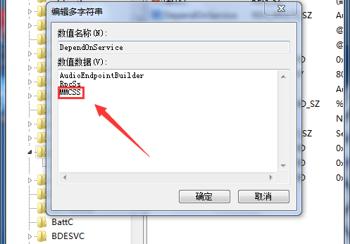 弹出编辑多字符串对话框,点击"MMCSS",将其删除,然后点击确定,