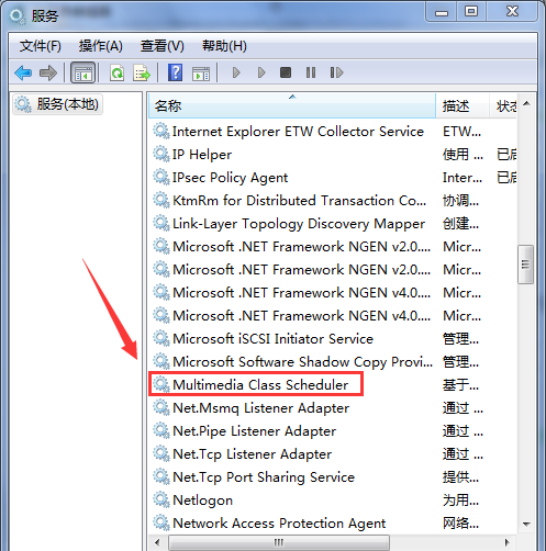 进入服务界面,找到 "Multimedia Class Scheduler" 并双击,如图,