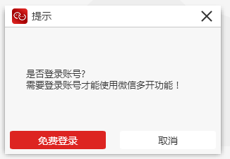 跳出提示,你必须登录账号才能使用微信多开功能,点击"免费登录",