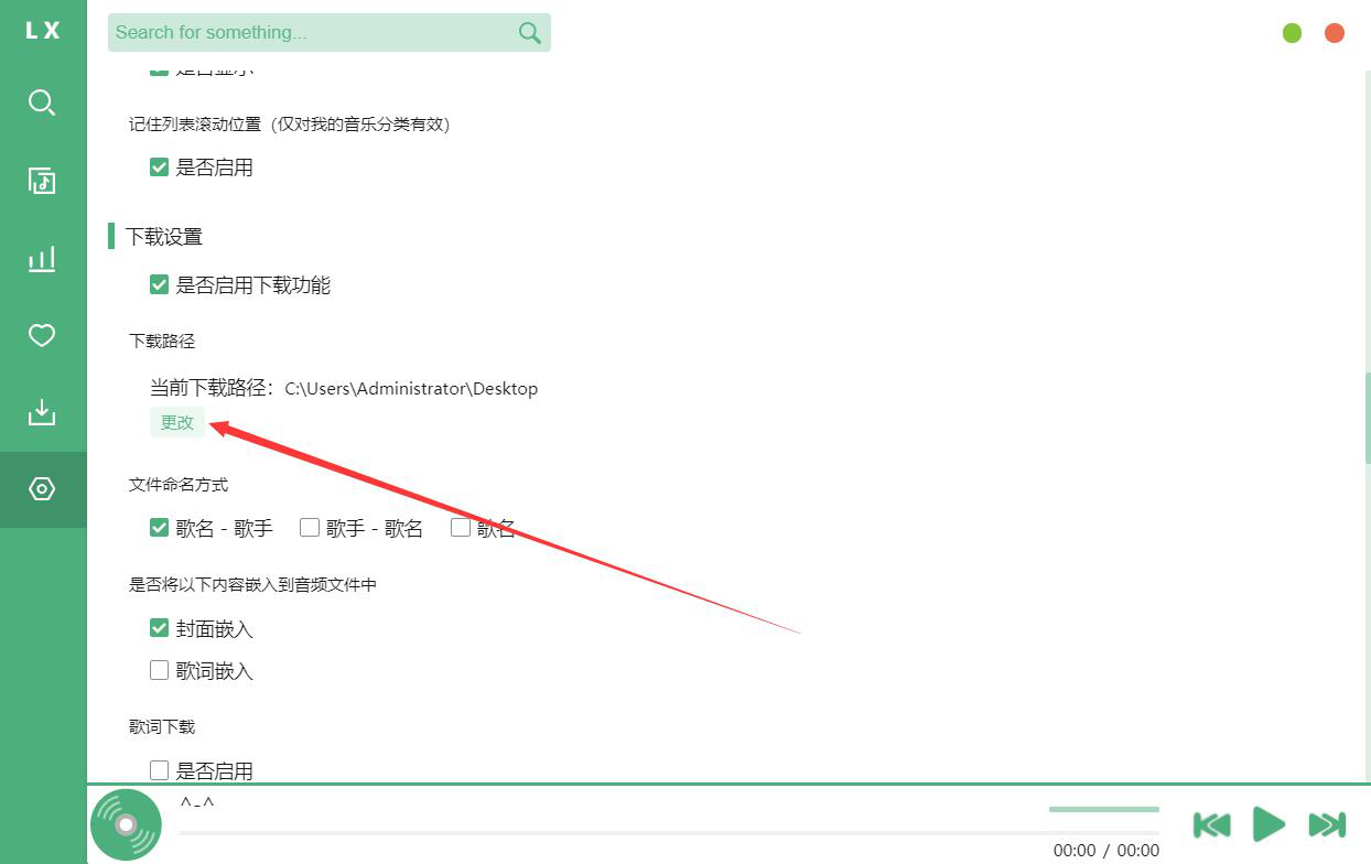 2. 如果洛雪音乐助手下载歌曲后的歌曲保存路径需要更改的话,就点击"更改"按钮。