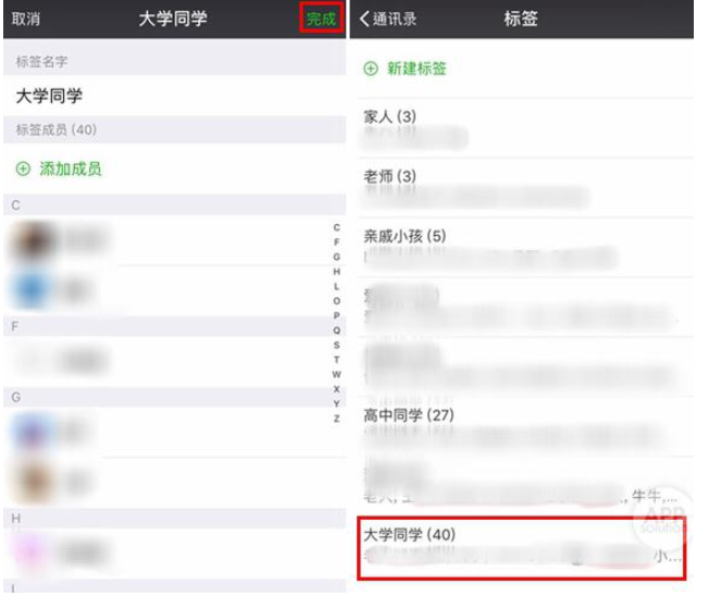 点击"完成",这 40 个人在你的微信就被加上了"大学同学"的标签了。