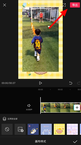 现在已经为视频添加了边框,效果如图,点击"导出",即可保存短视频。