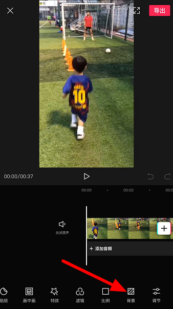 视频导入成功,进入剪辑窗口,左滑工具栏,选择"背景",
