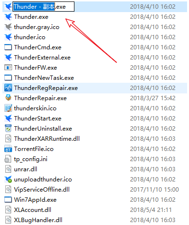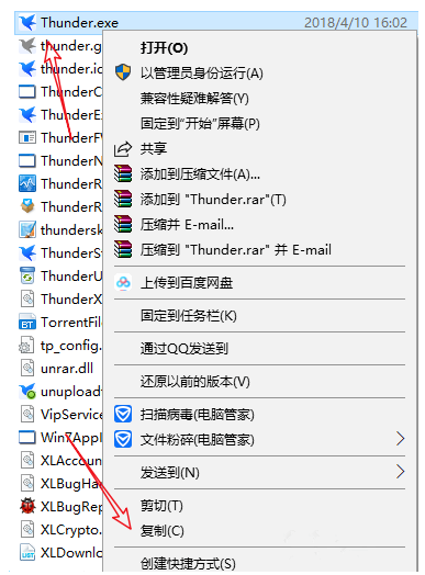 接着找到"Thunder.exe",鼠标右击,选择复制,粘贴创建一个副本,
