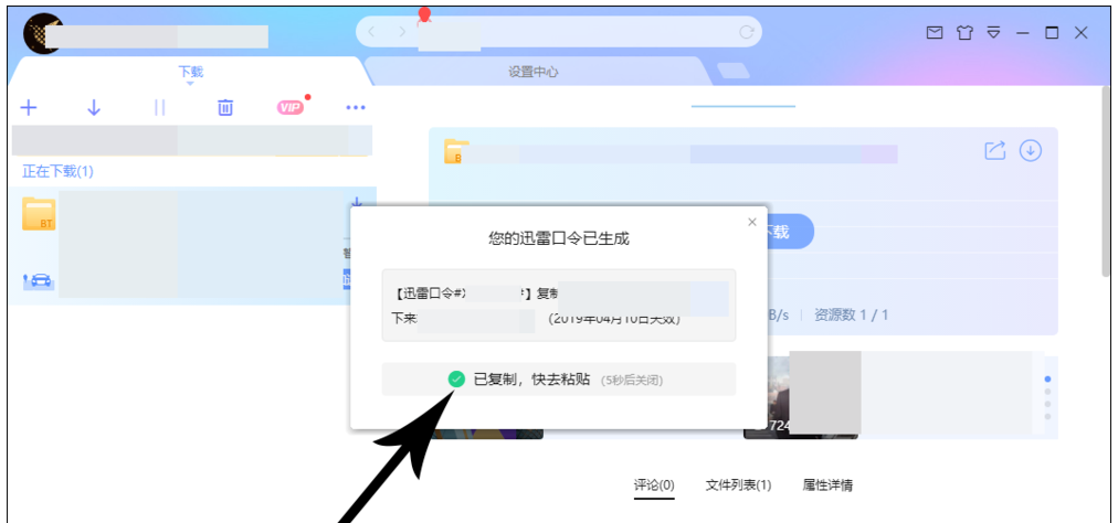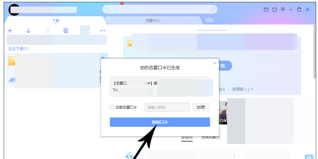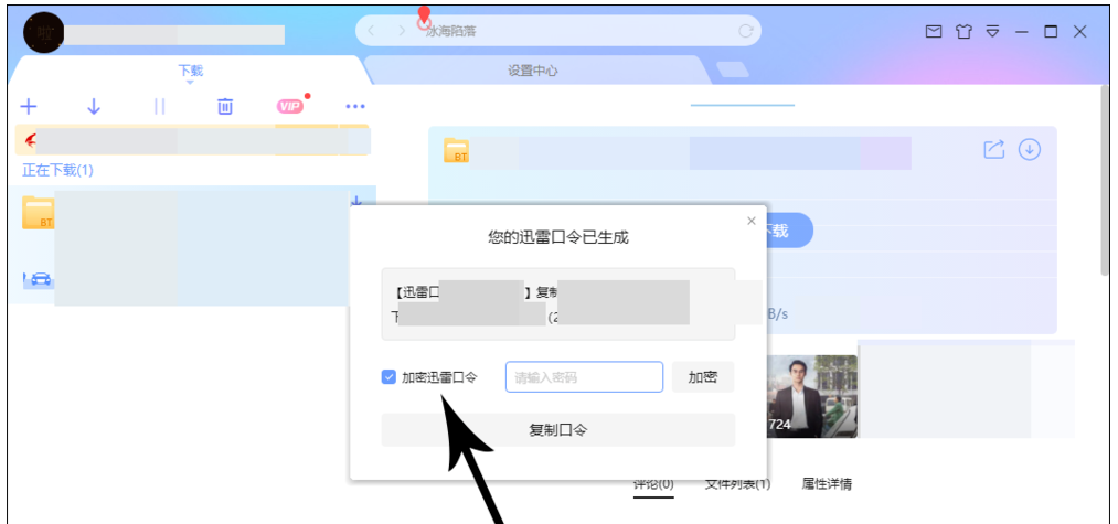出现弹窗,提示"您的迅雷口令已生成",口令是由 #、大小写字母和数字共同组成,你可以选择"加密迅雷口令",