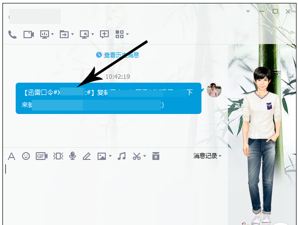 将复制好的迅雷口令分享给其他人,例如 QQ 好友,