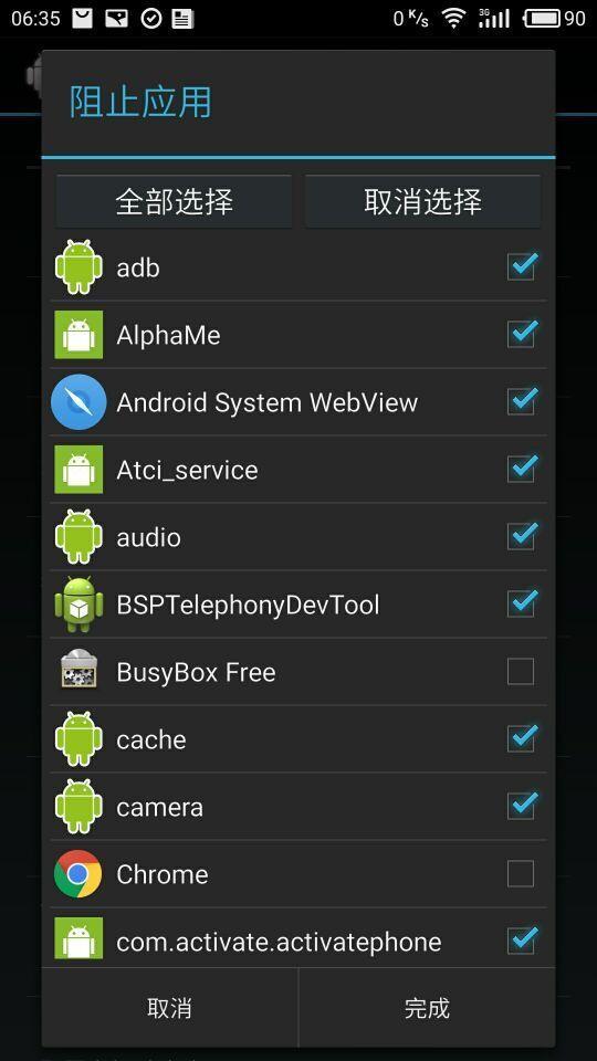 选择"全部选择",再一次找到"微信"取消钩钩,点击完成。如图: