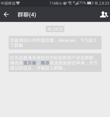 打开手机微信,找到一个你要分享的微信群,来到群聊页面,点击右上角的双人图标,点击打开图标,