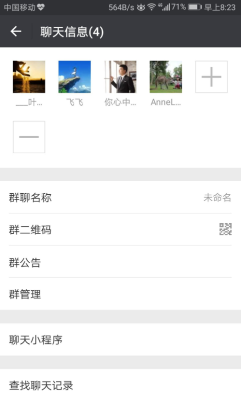 现在就来到了群聊天信息对话框,点击下面的“群二维码”选项就可以了,