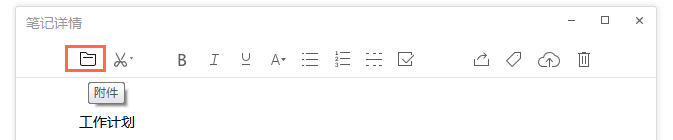 在上方工具栏中点击"附件",即可直接插入文件、图片,