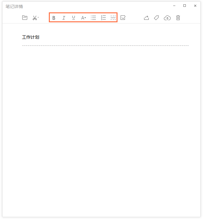 输入文字之后,你可以点击图中框选的七个工具,分别代表"粗体"、"斜体"、"下划线"、"字号"、"项目符号""数字编码"、"分隔线",进行相关设置,