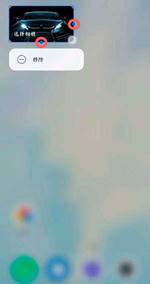 5、由于默认的大小是2X1,点击空白处退出桌面设置,长按添加好的【图库小工具】,拖动边框可放大;