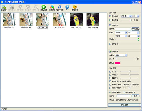 图片批量处理器是一款给图片加上一个模板的图像处理软件。图片上要加的模板可以是一个图片,也可以是一段文字,更可以是同时加入文字与图片。支持对单个图片文件的处理工作,同时支持多个文件的处理工作,可以为您一次性解决多个文件加上文字 和图片的工作,让原来烦琐的工作一下子变得轻松。