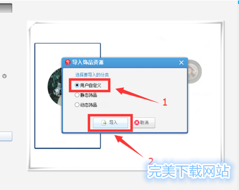 3. 点击"导入饰品”后,弹出如下方框,我们选择”用户自定义”,再点击下面的"导入”。