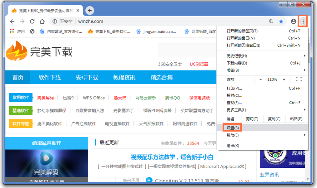 打开谷歌浏览器,进入界面,点击右上角的菜单按钮,弹出选项,选择"设置",