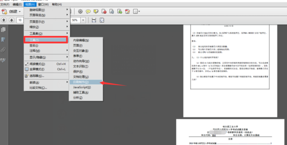 点击菜单栏的"视图"——"工具"——"印刷制作"选项,如图,