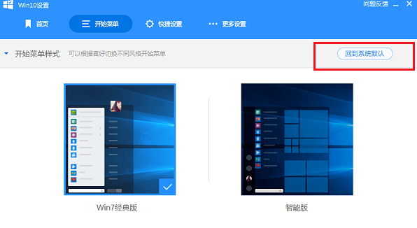 如果想恢复成 Win 10 系统开始菜单风格,点击“回到系统默认”,等待一会儿就恢复成 Win 10 系统风格了,如下图所示: