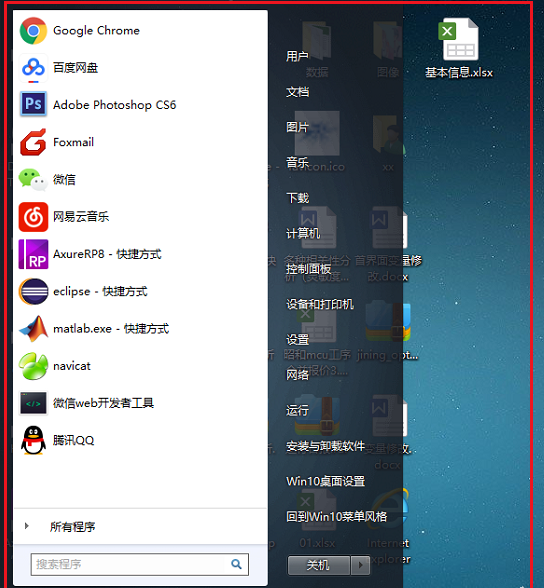 勾选“ Win 7 经典版”之后,可以看到 Win 10 系统的开始菜单已经变成了 Win 7 风格,如下图所示: